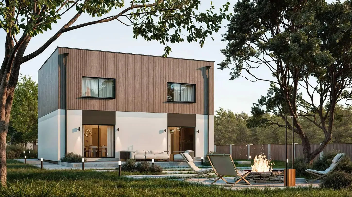QUBE is a ready-made design created with a family of 2+2 in mind. The well-thought-out layout connects an open living area on the ground floor—perfect for spending time together—with three bedrooms on the upper floor, providing privacy and comfort.